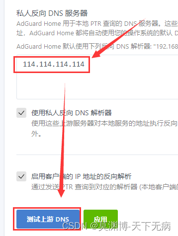 点击 测试上游DNS 时,右下角会弹些信息出来,提示正常就点击应用