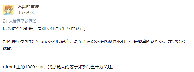 还有人称,“GitHub 上的 1000 Star,大约等于知乎的 50 万关注。”