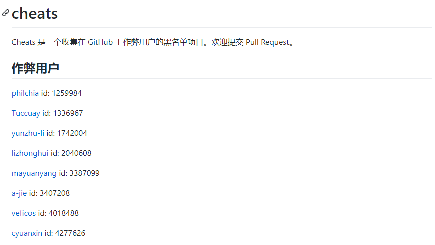 国内还有开发者专门在 GitHub 上做了个 “刷星” 黑名单,记录有作弊行为的用户和项目。
