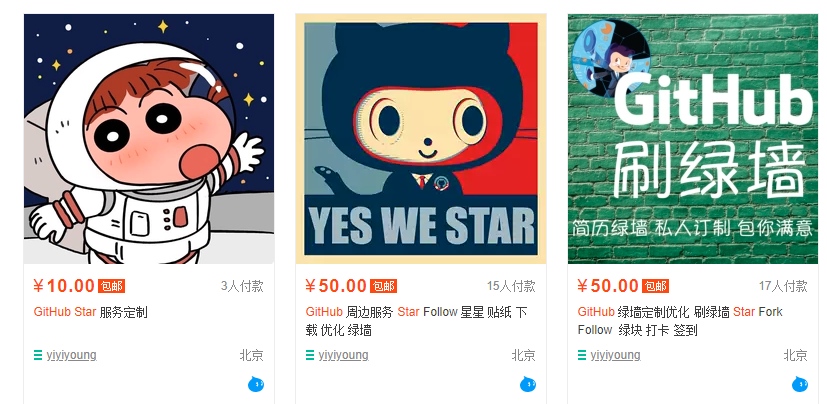不过,经扩展迷查询,现在在某宝上,依然可以搜到一些隐晦的 Github 有偿刷星服务。