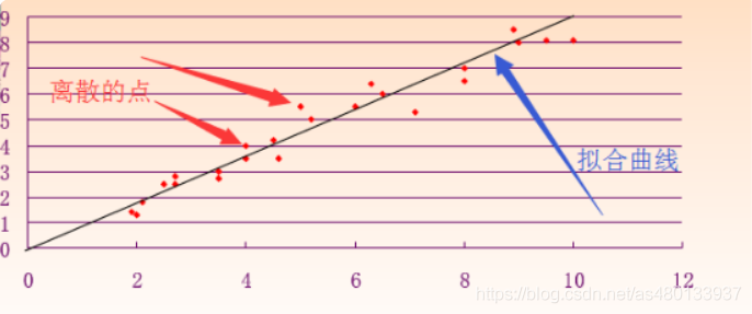 在我们做一些处理的时候,得到的数据可能是一些离散的点,而我们往往希望得到一个连续的函数(也就是拟合直线)或者更加密集的离散方程与已知数据相吻合,这过程就叫做拟合,