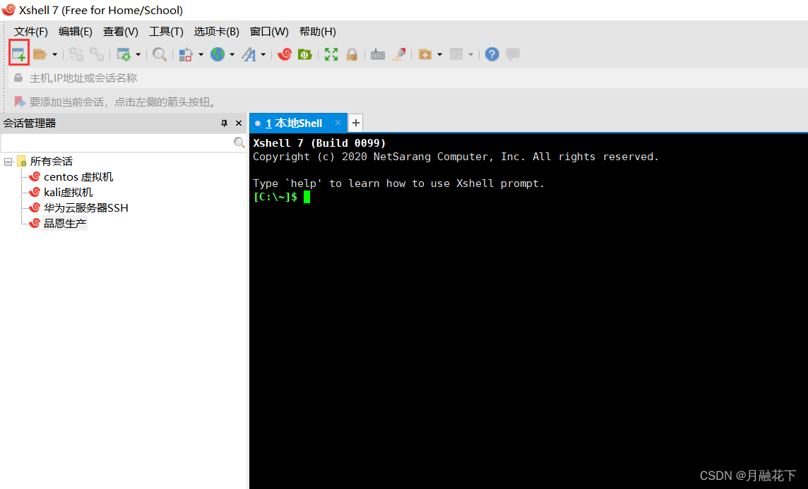 2、打开Xshell软件,点击新建会话: