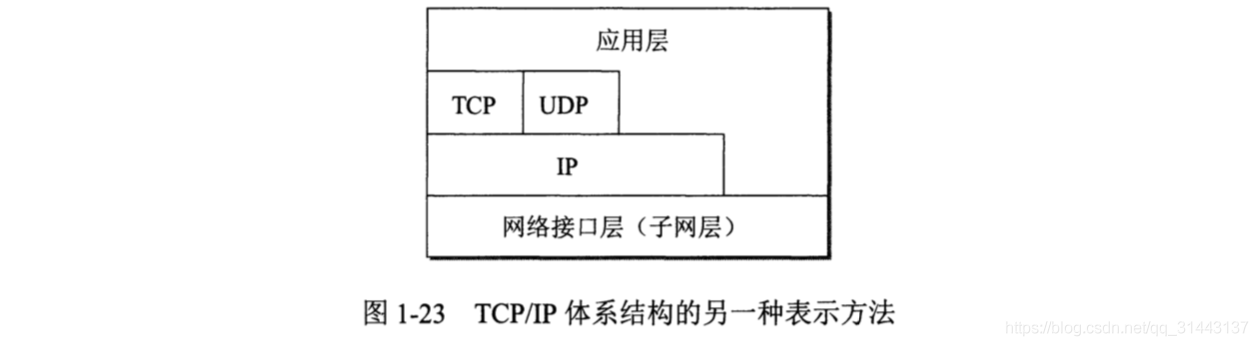 应当指出,技术的发展并不是遵循严格的OSI分层概念。实际上现在的互联网使用的TCP/IP体系结构有时已经演变成为图1-23 所示的那样,即某些应用程序可以直接使用IP层,或甚至直接使用最下面的网络接口层,图1-23 是这种表示方法。在图中,网络接口层有时也称为子网层。这里的“子网”是指一些局域网和某些广域网(如ATM网),但从IP层来看,这些网络属于数据链路层,也就是属于网络接口层。