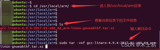 sudo tar -vxf gcc-linaro-4.9.4-2017.01-x86_64_arm-linux-gnueabihf.tar.xz