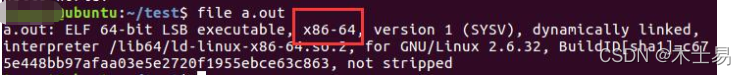 然后我们使用 file 命令来看下这个文件, 这个文件是可以在 X86 上运行的, 但是它不能在 ARM 上运行,因为它这里写的是 X86。 如下图所示。
