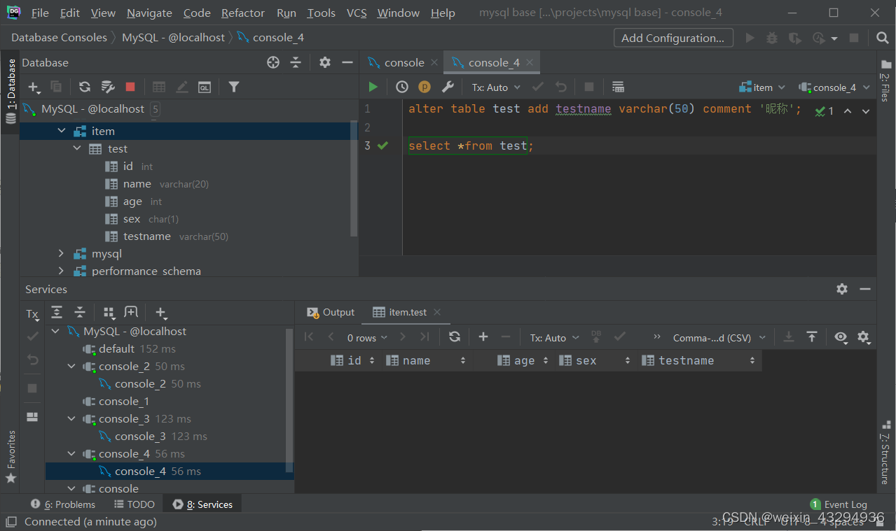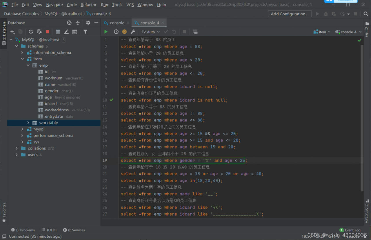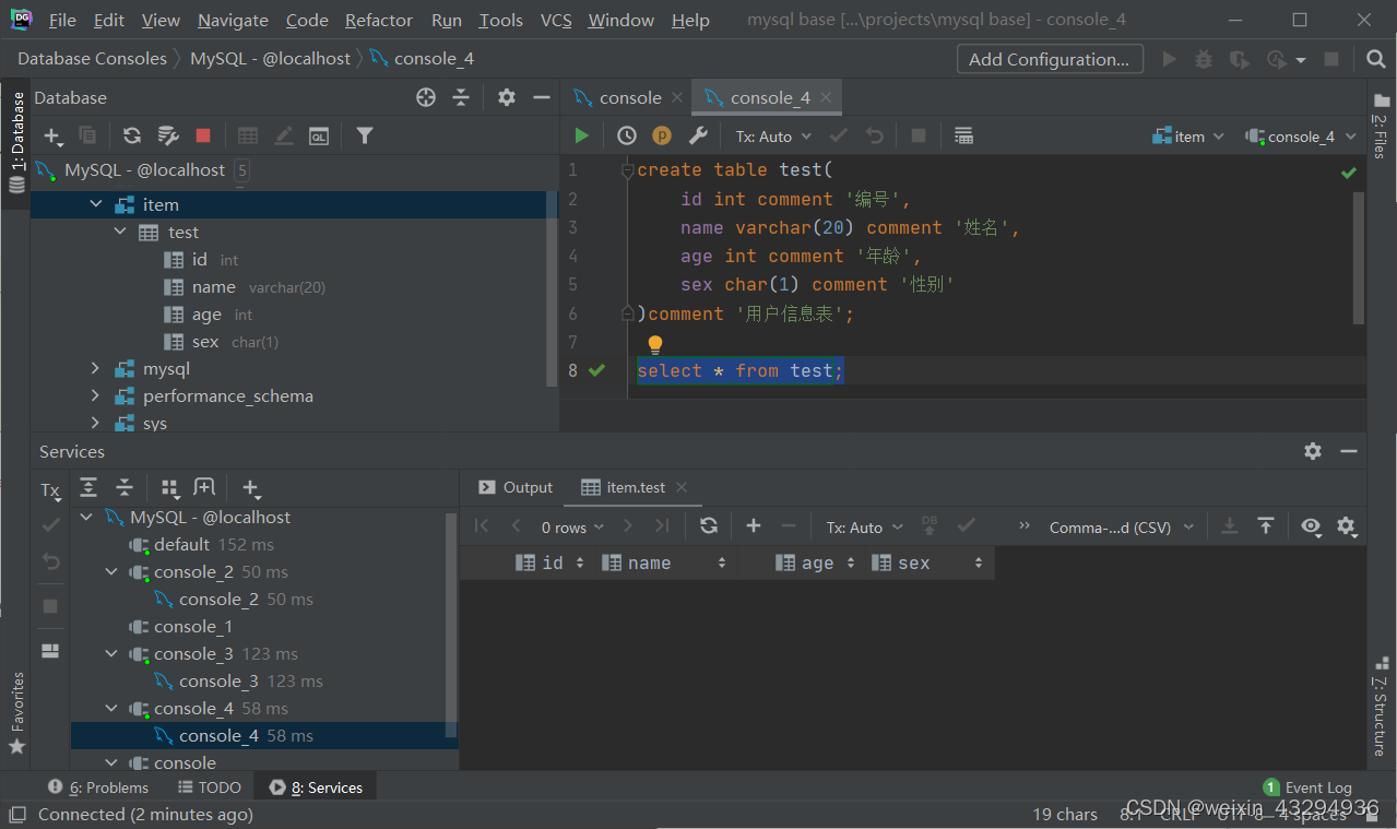 )comment '员工信息表';①添加数据