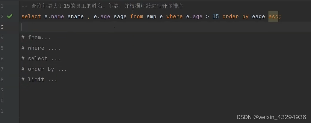 - 排序查询(order by)