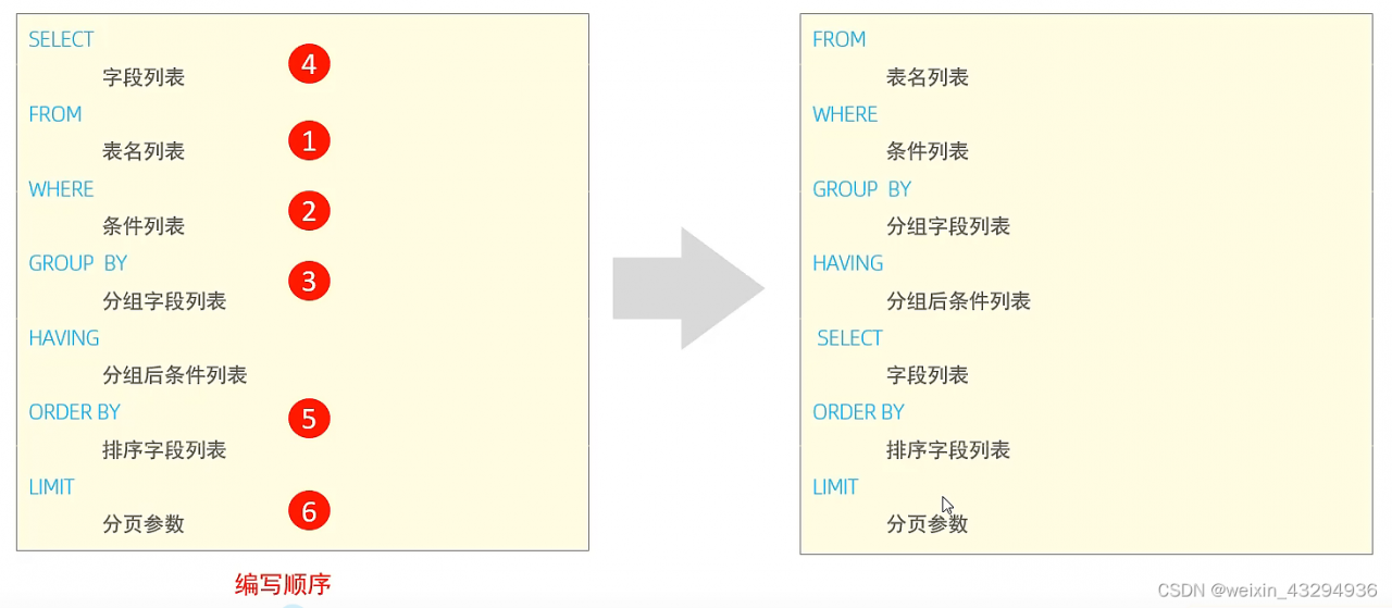 | order by | 排序字段列表 |