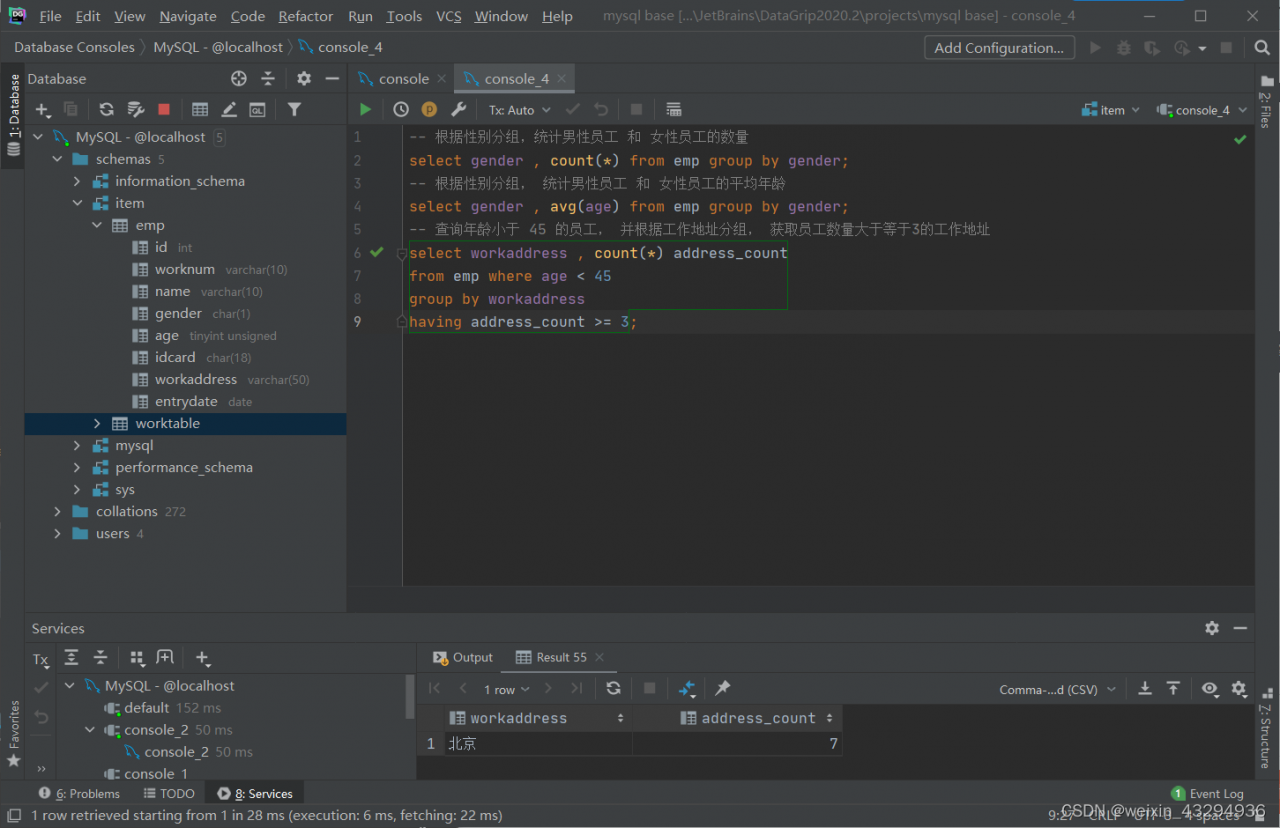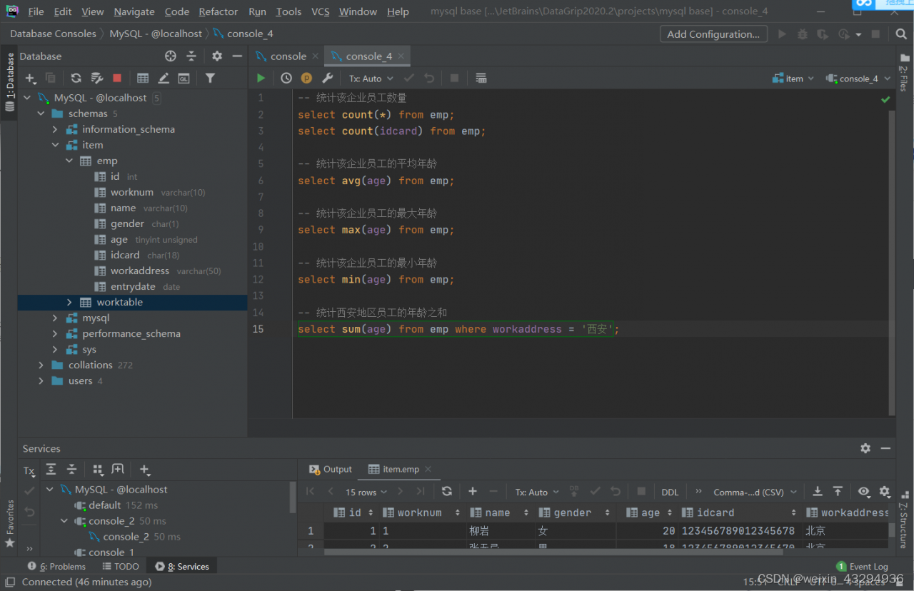 - 聚合函数(count,max,min,avg,sum)
