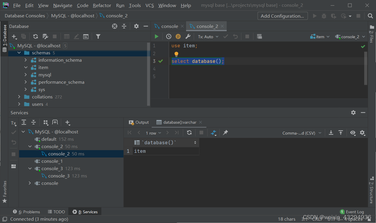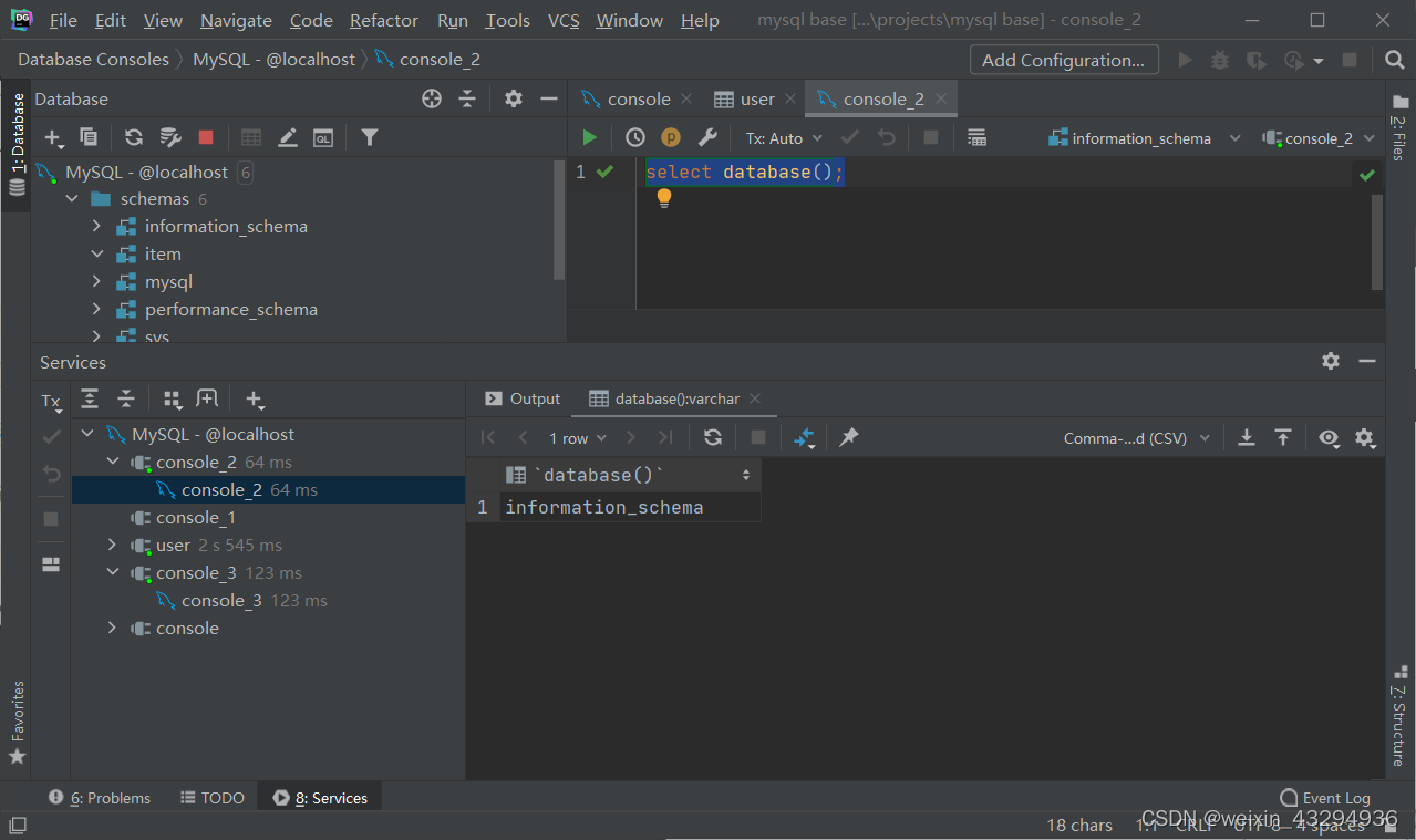 查询当前数据库