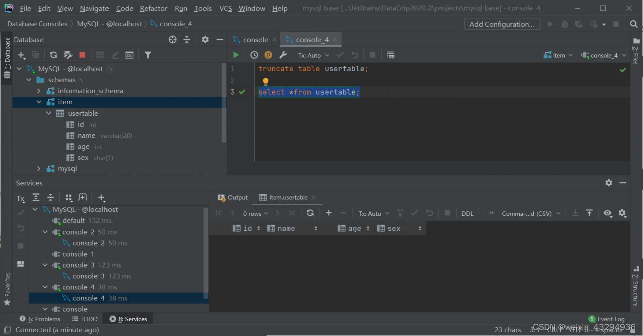 删除指定表,并重新创建该表(俗称格式化)