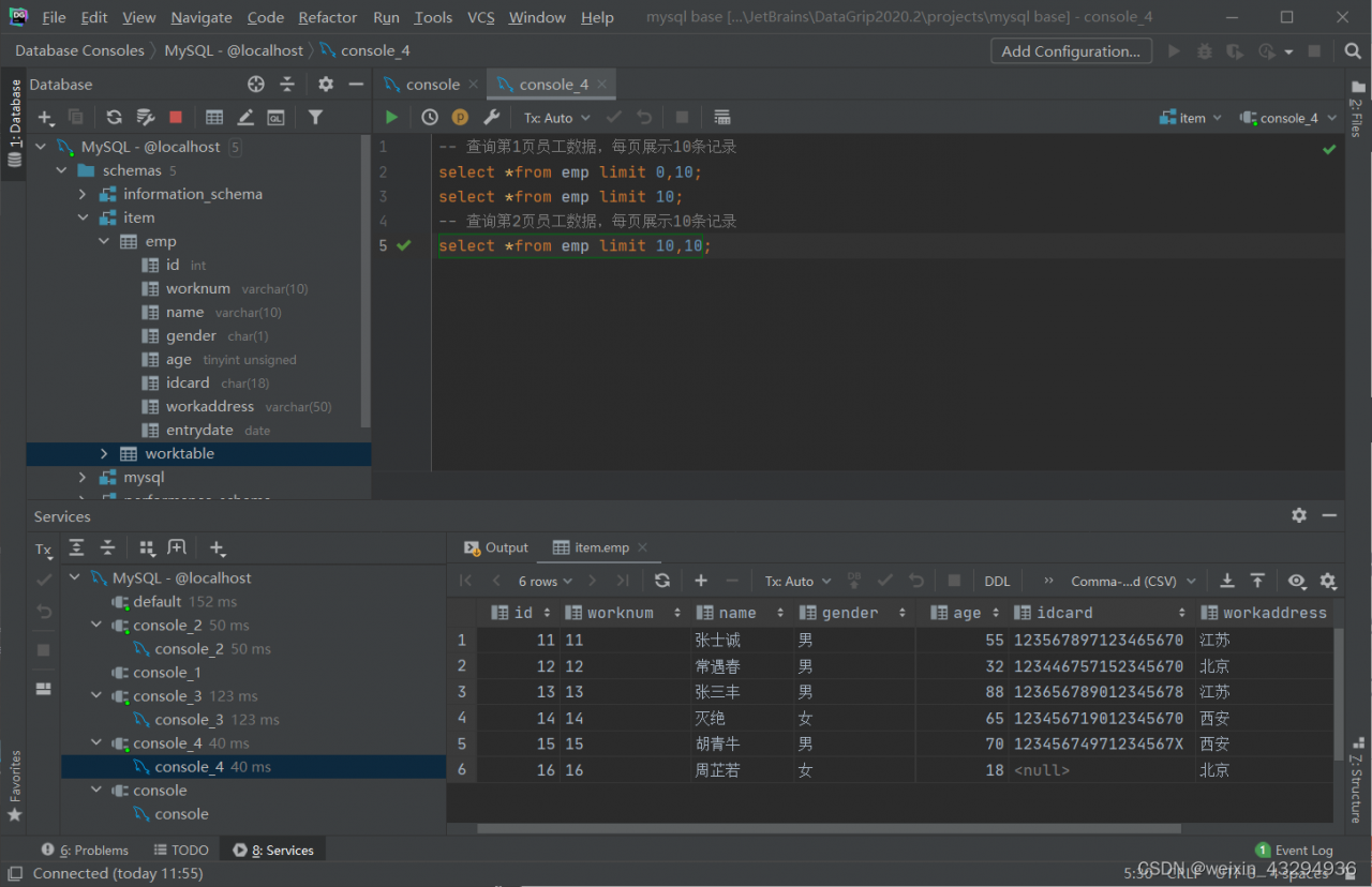 - 如果查询的是第一页数据,起始索引可以省略,直接简写为limit 10