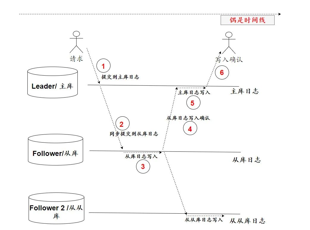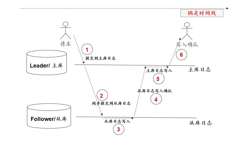 首先,只有一个主库时,主库日志写入,更新就算成功。而现在主从架构,还要等从库完成日志写入,主库才能提交日志。