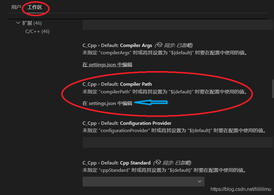 点击settings.json中配置后你就可以得到配置文件,添加g++的路径就好了,路径名称记得用双斜杠。