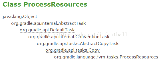 process:将sourceset定义的资源文件复制到class目录中,无依赖,属于Copy类型。SourceSetResources