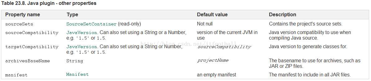 比较重要的是sourceSets,包含了项目中定义的sourcesets,下面一节会详细介绍。archivesBaseName项目压缩包的名称。manifest操作MANIFEST文件的。