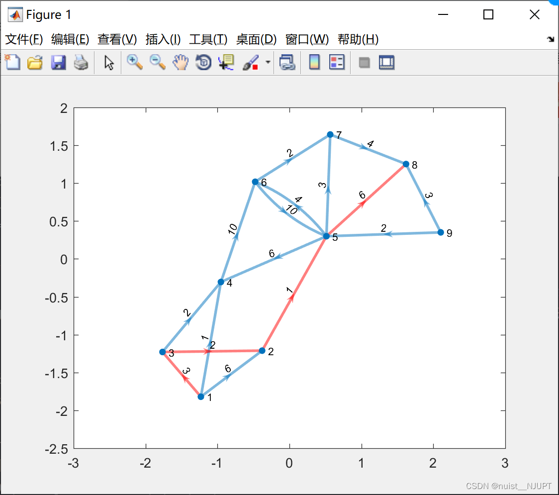 highlight(myplot, P, 'EdgeColor', 'r') %对这个变量即我们刚刚绘制的图形进行高亮处理(给边加上r红色)