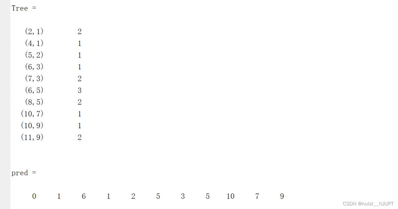%pred:答案中每个边对应的权值