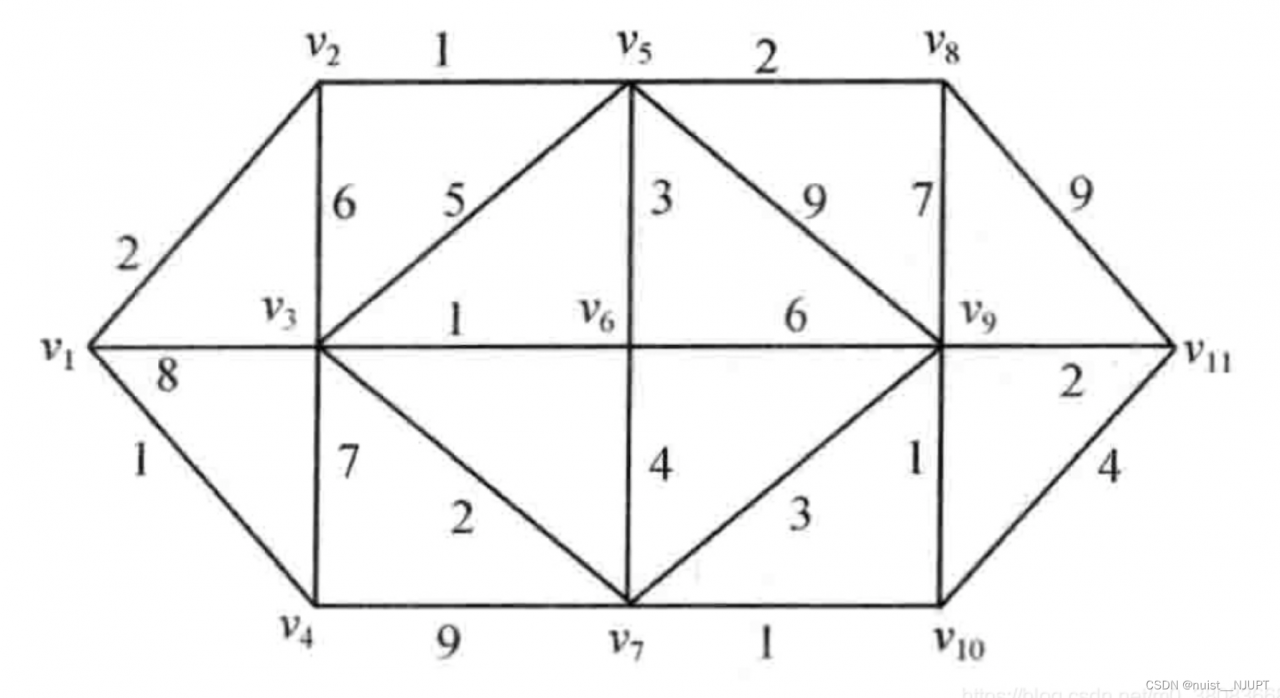 求下面无向图的最小生产树,如下: