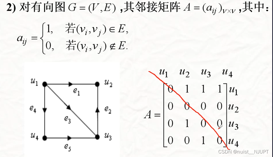 对于有向图的邻接矩阵,都是单向连接的,连通的话就是1,否则就是0.