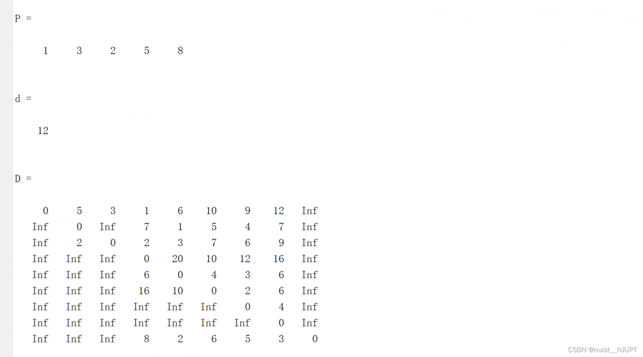 %P是最短路径经过的节点,d是最短距离