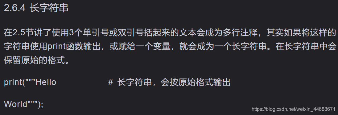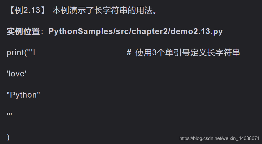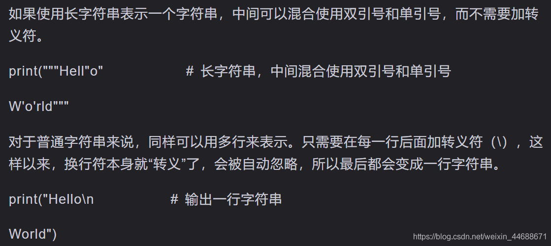 python长字符串输出‘‘‘python长字符串输出,用三个单引号或者三个双引号括起来的字符串。版权声明:本文为weixin_44688671原创文章,遵循CC 4.0 BY-SA版权协议,转载请附上原文出处链接和本声明。原文链接:https://blog.csdn.net/weixin_44688671/article/details/111868479