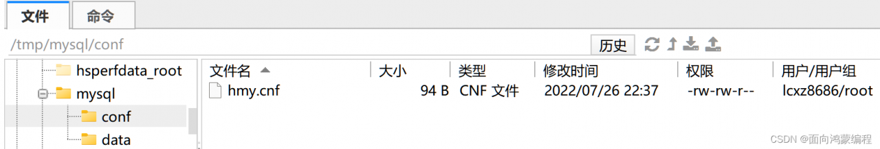 mkdir /tmp/mysql/conf然后我们将自定义的 hmy.cnf 配置文件传进来!