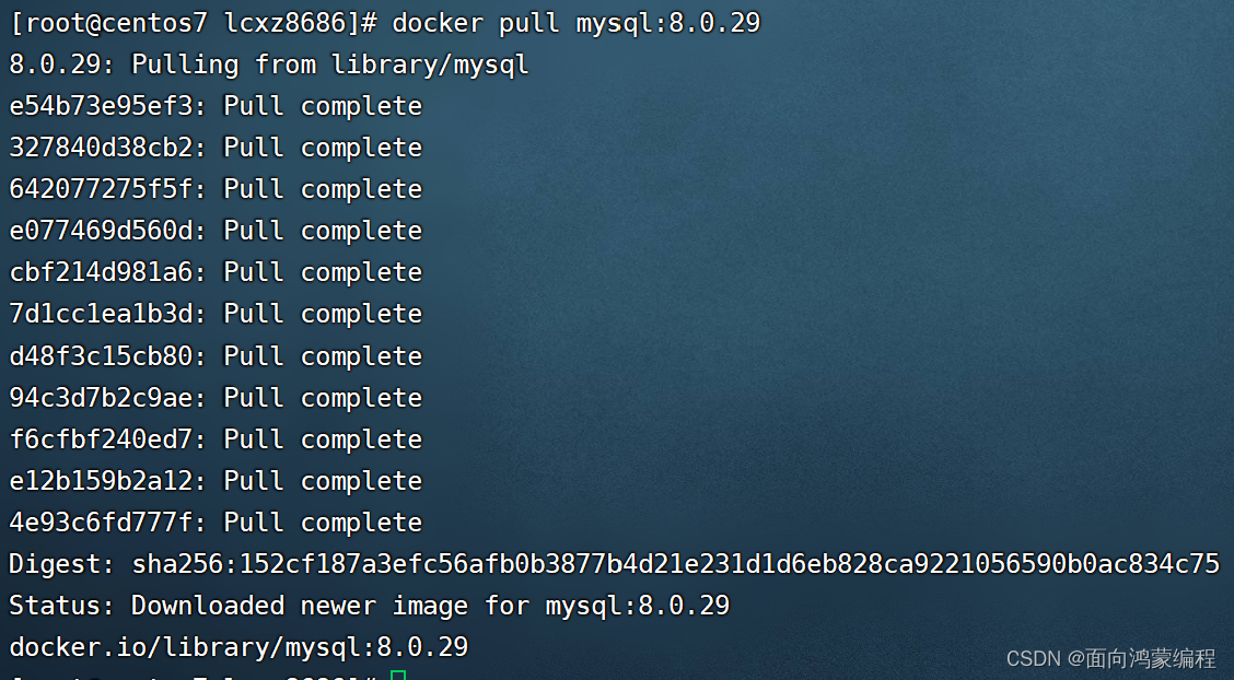 docker pull mysql:8.0.29MySQL镜像比较大,所以pull的时间比较久,请耐心等待!