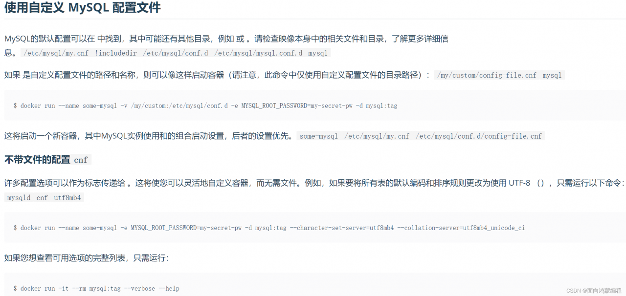 在DockerHub官网上有提供相应的关于cnf配置文件的解释: