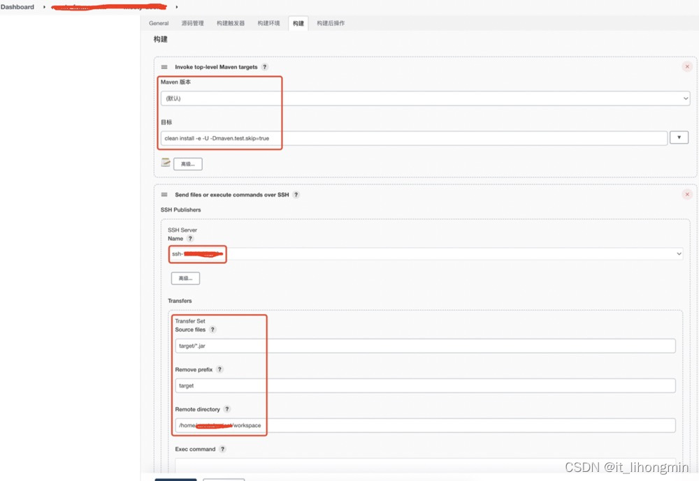 下面就是在 Publish over SSH中编写脚本等的时候了,这个时候分为两种情况,一种是直接将spring boot打成jar包,然后在服务器端进行启动;另一种是推包过去在服务器端打成 docker镜像再启动