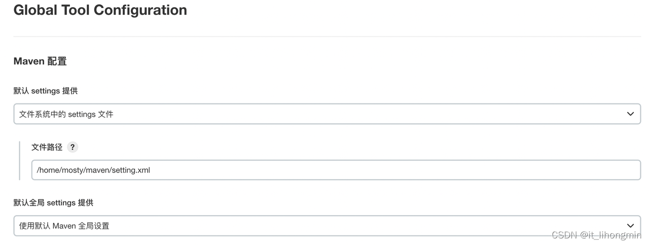 Maven也已经安装了,这里需要设置 setting.xml的配置文件地址,服务部署时的配置文件,将其放到服务器中的 /home/kevin/maven/setting.xml, 则: