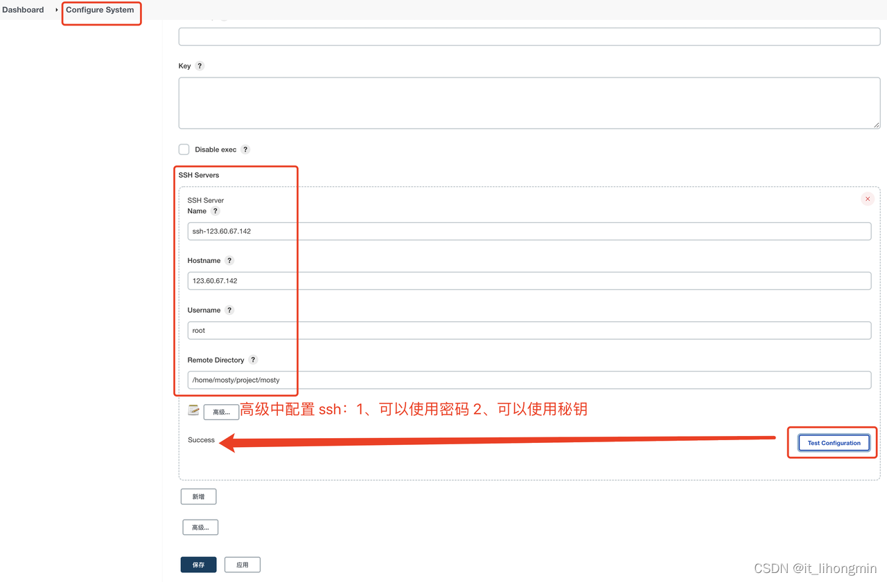 然后在 Configure System配置ssh server,然后在项目job创建时可以直接使用插件的服务,如下: