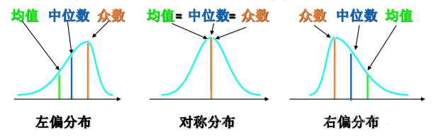 而S接近0则可认为分布是对称的。若知道分布有可能在偏度上偏离正态分布时,可用偏离来检验分布的正态性。右偏时一般算术平均数>中位数>众数,左偏时相反,即众数>中位数>平均数。正态分布三者相等。
