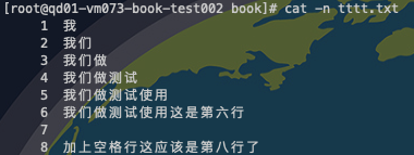 [root@1-min etc]# cat -n tttt.txt //显示所有行号(包括空行)