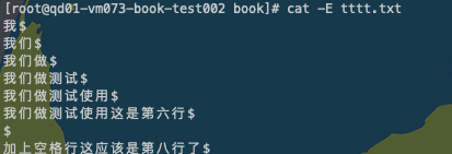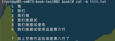 [root@1-min etc]# cat -b tttt.txt //显示所有行号(但不包括空行)
