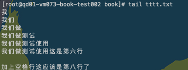 [root@1-min etc]#head -4 tttt.txt //显示后 4行数据