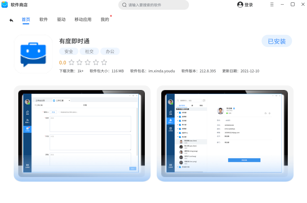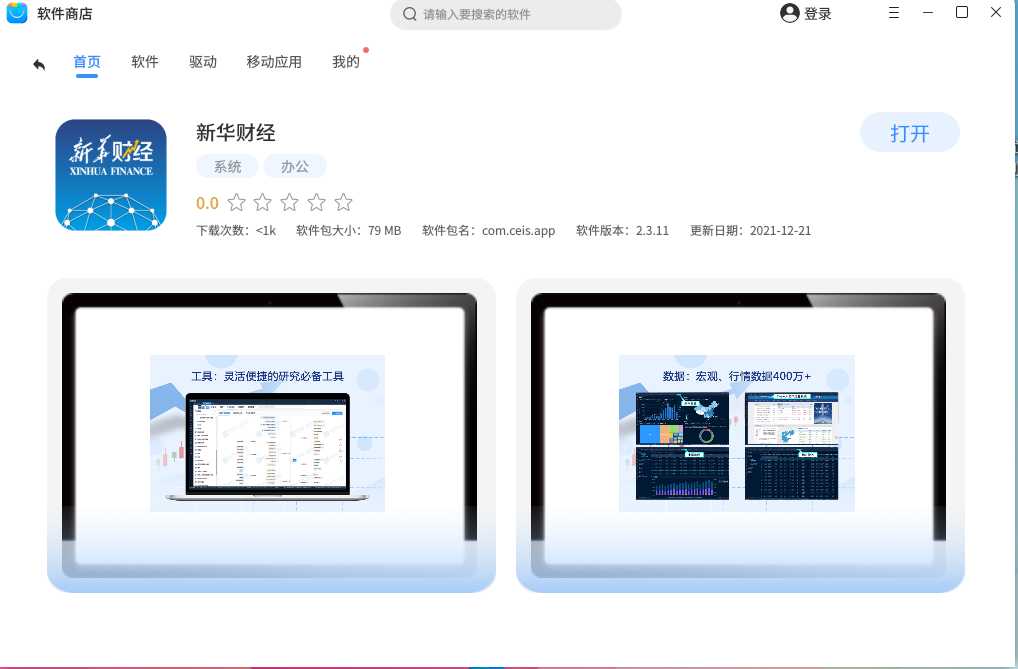 2、打开麒麟商店,搜索应用下载安装。