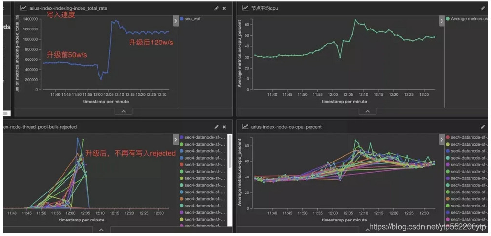 我们重点看下写入模型优化的效果,下面的优化,都是在客户端、服务端资源没做任何调整的情况下的生产数据。