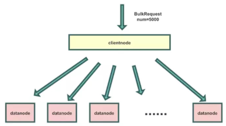 数据在写入ClientNode的时候,ClientNode会给BulkRequest的一批请求生成一个相同的随机值,目的是为了让写入的一批数据,都能写入相同的slot中。数据流转如图所示: