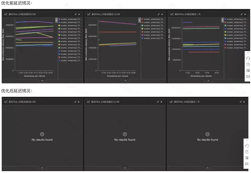 最后再来看下写入延迟问题。经过优化后,写入能力得到大幅提升后,极大的缓解了当前的延迟情况。下面截取了集群优化前后的延迟情况对比。