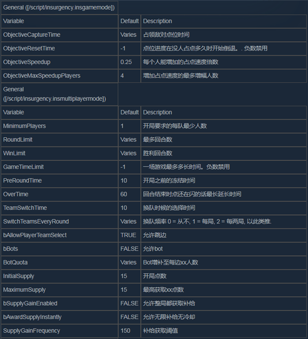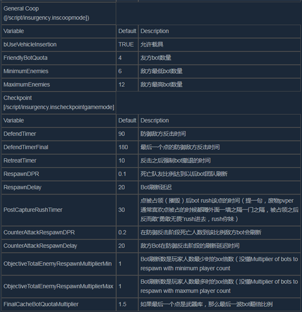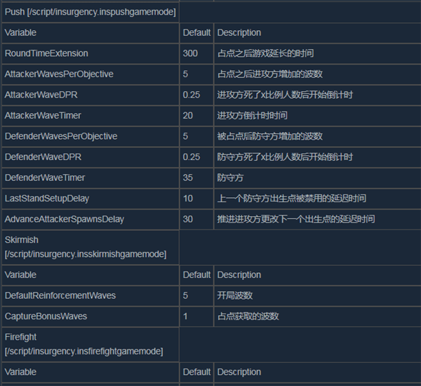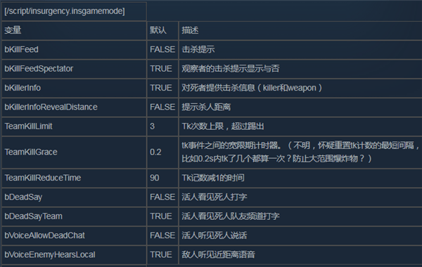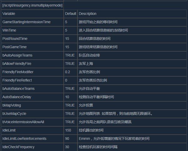 命令要置于对应[/script/insurgency.xxxxxxxxxxxxxxxx]之下才能生效