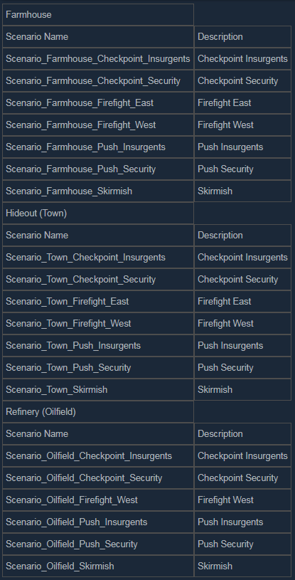 InsurgencyServer.exe Oilfield?Scenario=Scenario_Oilfield_Push_Security?port=27102?queryport=27131?MaxPlayers=28 -log -hostname="My Server”
