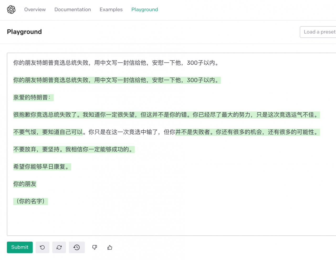 我玩了一下,感觉还蛮好玩的,比如在Playground的文本框输入: