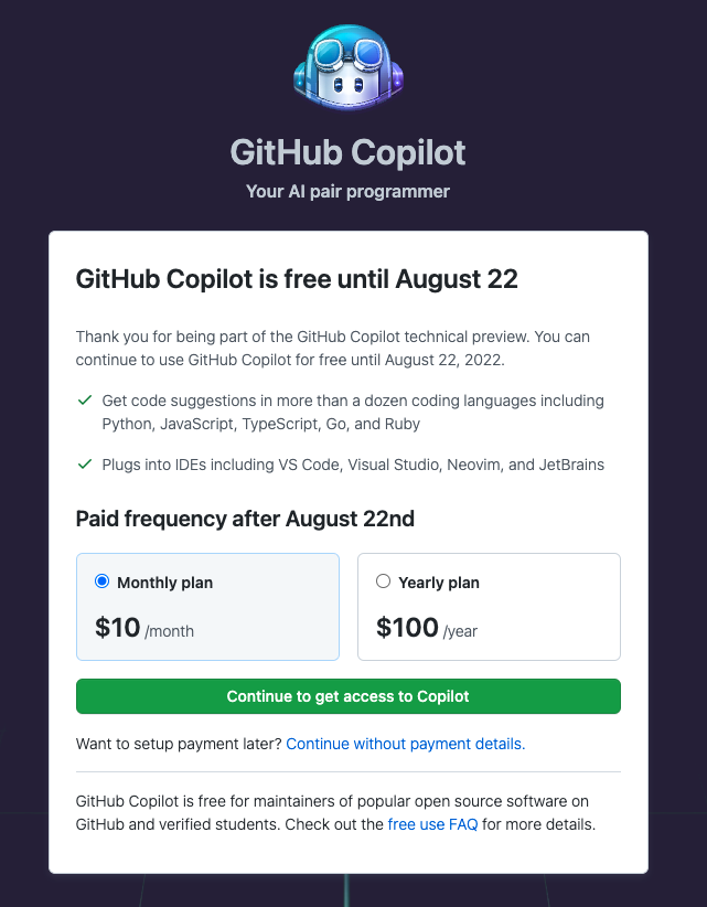 上个月安利了一波:机器学习自动补全代(hán)码(shù)神器,然后就被打脸了,Github 宣布 copilot 要开始收费了。