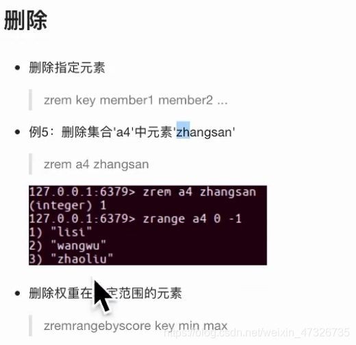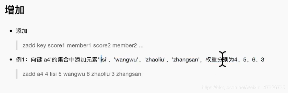 zset : 有序的集合,里面的值均为 string 类型,不可修改,具有权重的属性,默认按照权重的从大到小排序