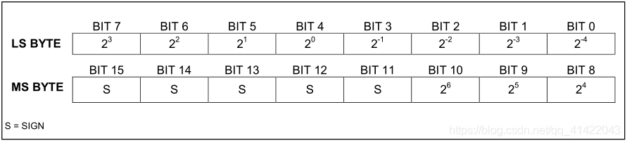 DS18B20中的温度传感器数据用16位二进制形式提供,其中S为符号位(正数S=0,负数S=1)。温度传感器的分辨率可由用户配置为9、10、11或12位,分别对应0.5℃、0.25 ℃、0.125℃和0.0625℃的增量。开机时的默认分辨率是12位。如果DS18B20配置为12位分辨率,那么温度寄存器中的所有位都将包含有效数据。对于11位分辨率,0位没有定义。对于10位分辨率,位1和0没有定义,对于9位分辨率,位2、位1和位0没有定义。