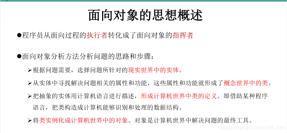 面向对象,将功能封装进对象,强调具备了功能的对象,以类/对象为最小单位,考虑谁来做。