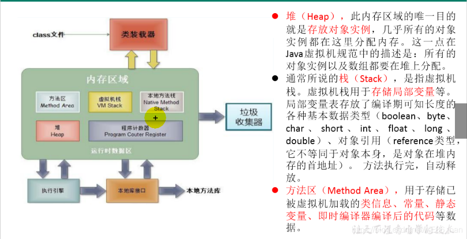 属性:加载到堆内存中对象得堆空间中(非static得)