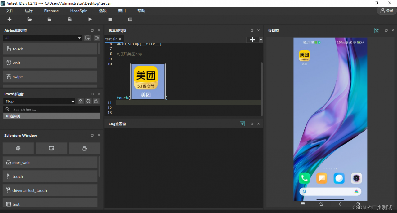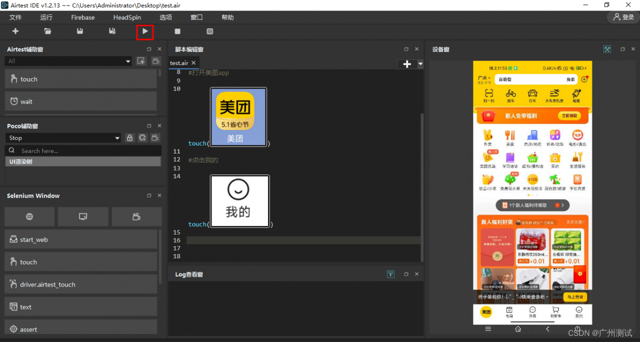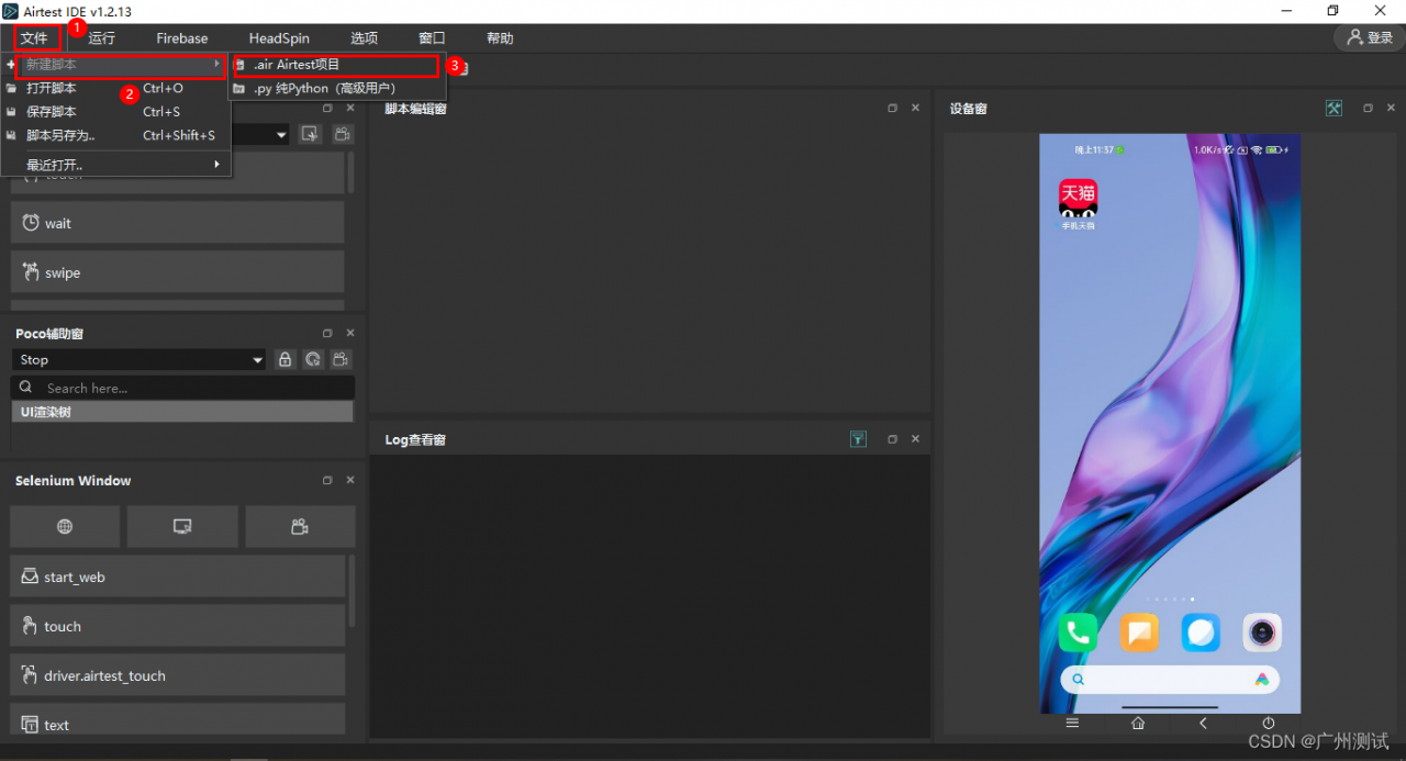 点击“文件”——‘新建脚本’——“AirTest项目”