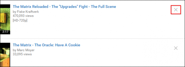 If clearing your entire watch history doesn’t sound appealing, but there are videos you want to prune, then you can delete single videos from your watch history by clicking the small “X” in the upper-right corner of each video in your history.